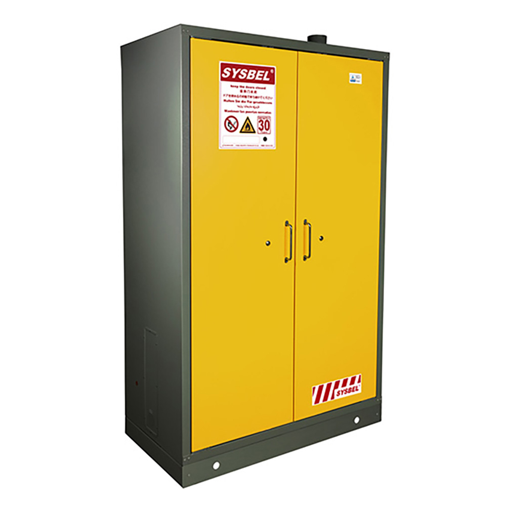 Sysbel 30-minute Safety Storage Cabinet is meticulously designed for maximum safety and compliance, featuring high-strength steel construction with multi-layer fireproof insulation. It includes automatic door closure at 122°F (50°C), heat-sensitive seals, and adjustable shelving up to 75kg per shelf. Each door is secured with a cylindrical lock and labeled for emergency visibility. Compliant with EN 14470-1, NFPA 30, and OSHA standards, and TÜV certified for fire safety, it’s ideal for labs, industrial sites, and environments handling flammable materials.