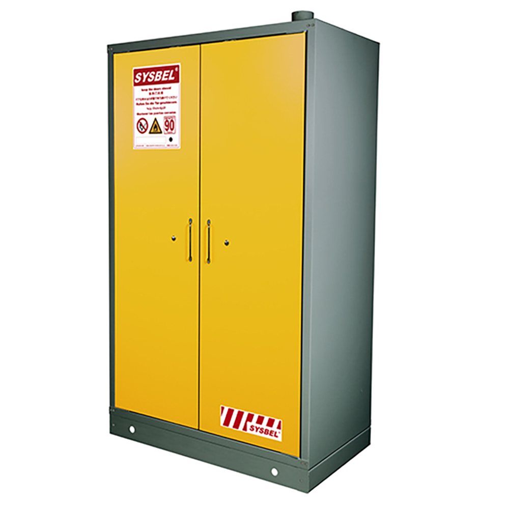 Sysbel 90-minute Safety Storage Cabinet is meticulously designed for maximum safety and compliance, featuring high-strength steel construction with multi-layer fireproof insulation. It includes automatic door closure at 122°F (50°C), heat-sensitive seals, and adjustable shelving up to 75kg per shelf. Each door is secured with a cylindrical lock and labeled for emergency visibility. Compliant with EN 14470-1, NFPA 30, and OSHA standards, and TÜV certified for fire safety, it’s ideal for labs, industrial sites, and environments handling flammable materials.